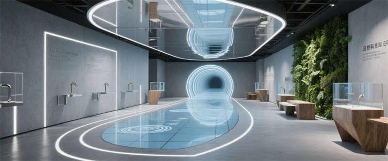 各區(qū)域通過四大統(tǒng)一性語言緊密串聯(lián):霧霾藍(lán)橢圓金屬門把手貫穿全空間,再生材料家具呼應(yīng)可持續(xù)發(fā)展理念,聲學(xué)墻面嵌入本地植物標(biāo)本強(qiáng)化生態(tài)屬性,智能燈光系統(tǒng)則通過4000K色溫線性燈帶實現(xiàn)晝夜場景的無縫切換。特別設(shè)計的全息投影展廳與智能階梯會議室,通過LED交互地屏與AR懸浮展臺,將品牌科技基因融入空間體驗。