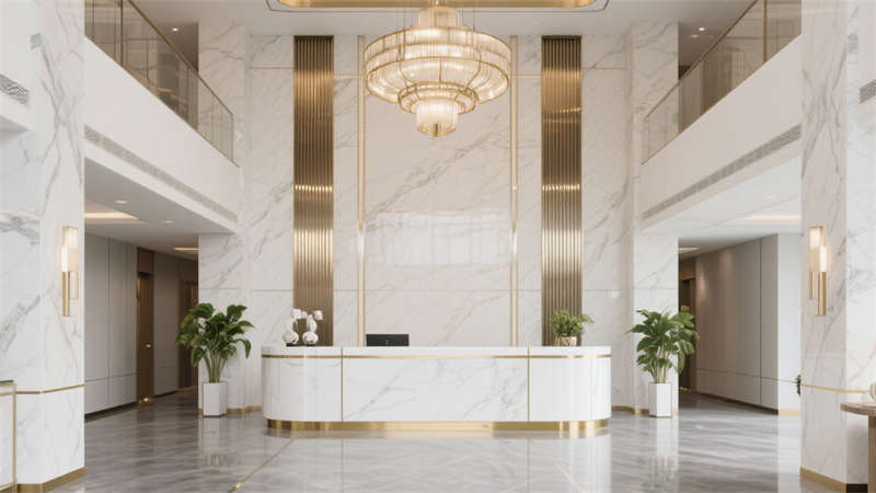 本設(shè)計以輕奢風(fēng)格為核心,通過柔和的基底色調(diào)與精致的細節(jié)搭配,構(gòu)建出兼具質(zhì)感與舒適度的酒店環(huán)境??臻g以米白色與淺灰色為基礎(chǔ),巧妙融入金色金屬線條作為點綴,既避免了過度奢華的厚重感,又增添了空間的精致度。墻面與地面選用細膩的大理石紋理材質(zhì),在光線映襯下呈現(xiàn)出自然的光澤,提升整體空間的高級感。家具選型注重線條的簡約流暢,搭配柔軟的布藝軟裝,營造出溫馨舒適的居住氛圍。各個區(qū)域在設(shè)計上保持風(fēng)格統(tǒng)一,從公共空間到客房區(qū)域,都延續(xù)了輕奢的設(shè)計語言,讓整體空間既富有格調(diào),又能給人帶來放松愜意的居住體驗。