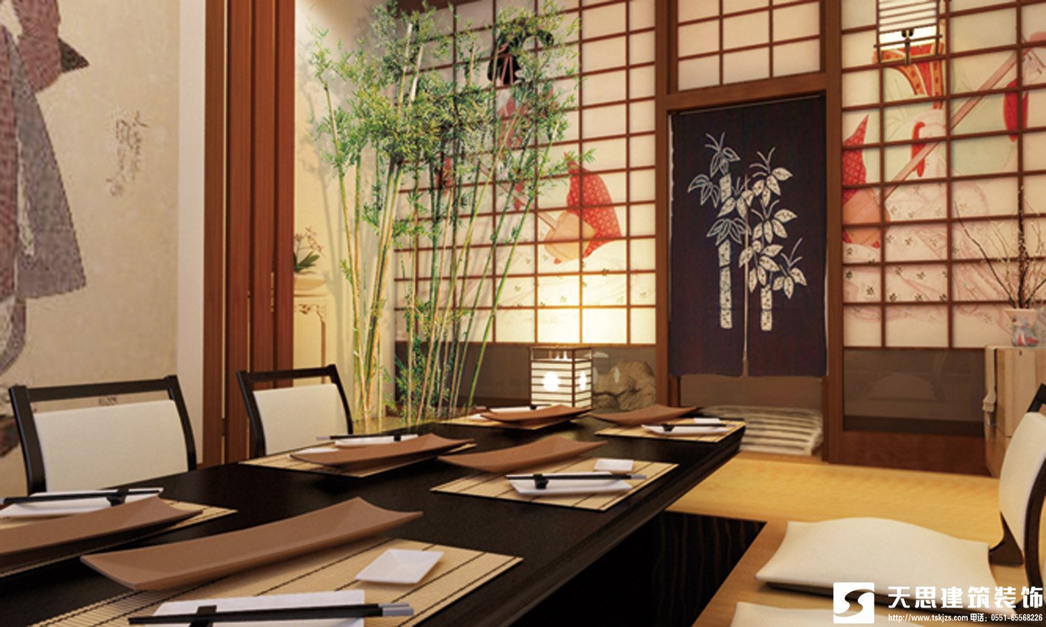 日式料理店現(xiàn)在逐漸地流行起來(lái),人們喜歡它們的原因不僅是美食的誘惑,還有賦予日本國(guó)家裝修文化喜愛(ài)。日式裝修的色彩主要是自然色,強(qiáng)調(diào)簡(jiǎn)潔的效果,增加自然和諧,讓身在其中的人們感到放松和舒適。日式裝修材料非常講究,選擇天然木制材料是每個(gè)日式裝修的特點(diǎn),在實(shí)際運(yùn)用中,還能夠?qū)⒄麄€(gè)簡(jiǎn)潔大方的特點(diǎn)體現(xiàn)出來(lái)。