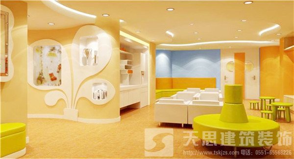 親子早教機(jī)構(gòu)在功能設(shè)計(jì)上區(qū)別于幼兒園的區(qū)域功能。因此我們?cè)谶M(jìn)行親子早教中心的環(huán)境設(shè)計(jì)時(shí),不僅將裝修思路與幼兒園設(shè)計(jì)一概而論。天思裝飾指出,親子早教中心的主體人群由于年齡較小,缺乏自我行為和安全的控制能力,所以在早教中心的環(huán)境設(shè)計(jì)過(guò)程當(dāng)中,要符合兒童心理特征,能引起孩子的注意和興趣,選材要以綠色環(huán)保為主。