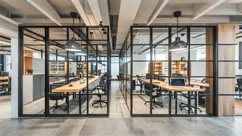 本6500㎡廠房設(shè)計采用現(xiàn)代工業(yè)風為核心,融合功能性與科技美學??臻g規(guī)劃嚴格遵循生產(chǎn)流程,劃分生產(chǎn)、倉儲、辦公、輔助四大模塊,通過鋼架玻璃隔斷實現(xiàn)通透性與分區(qū)管理。主色調(diào)選用深灰、淺灰、企業(yè)藍三色體系,地面采用耐磨環(huán)氧地坪漆,墻面運用金屬波紋板與混凝土質(zhì)感涂料。智能化設(shè)計貫穿全廠,集成AGV物流系統(tǒng)、環(huán)境監(jiān)測屏及LED導向標識。重點區(qū)域如入口LOGO墻、橙色休息區(qū)等植入色彩心理學應(yīng)用,既保持工業(yè)空間理性特質(zhì),又提升員工舒適度。照明系統(tǒng)采用分級控制,生產(chǎn)區(qū)6500K高顯指LED工礦燈保障作業(yè)精度,辦公區(qū)4000K暖光營造高效氛圍。