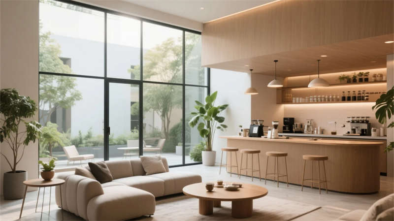 該設(shè)計(jì)以現(xiàn)代簡(jiǎn)約理念為核心,打造一個(gè)流暢而人性化的汽車空間。整體采用中性色調(diào)和自然材質(zhì),如白墻、木飾面和玻璃元素,營(yíng)造出明亮通透的環(huán)境,讓光線自由流動(dòng)。車輛展廳作為焦點(diǎn),無(wú)縫連接銷售洽談區(qū),通過(guò)開(kāi)放式布局促進(jìn)互動(dòng),同時(shí)保持視覺(jué)統(tǒng)一。售后服務(wù)接待區(qū)以簡(jiǎn)約線條提升效率感,維修車間則注重實(shí)用與整潔,確保功能性與美觀并存??蛻粜菹^(qū)融入舒適家具和綠植,提供寧?kù)o的等候體驗(yàn),而員工辦公區(qū)則強(qiáng)調(diào)協(xié)作氛圍。備件倉(cāng)儲(chǔ)區(qū)通過(guò)智能存儲(chǔ)設(shè)計(jì)保持秩序,車輛清洗區(qū)則運(yùn)用隱蔽技術(shù)實(shí)現(xiàn)高效清潔。整個(gè)項(xiàng)目強(qiáng)調(diào)空間流動(dòng)性和科技細(xì)節(jié),從材料選擇到布局規(guī)劃,都致力于提升用戶體驗(yàn)和品牌質(zhì)感,讓每個(gè)區(qū)域在簡(jiǎn)約中彰顯專業(yè)與溫暖。
