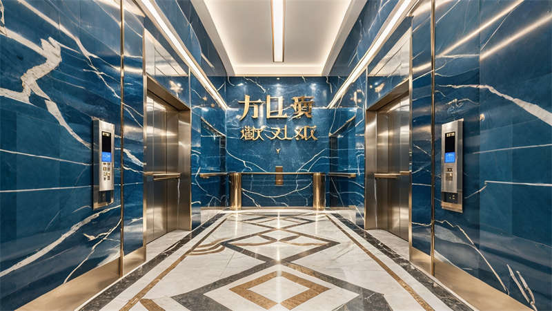 色彩體系以香檳金與深海藍(lán)為主調(diào),大堂采用香檳金金屬線條勾勒建筑肌理,搭配深海藍(lán)大理石營造視覺重心。客房區(qū)運用暖灰硬包墻面平衡色彩強(qiáng)度,通過2700K暖光與4000K中性光分區(qū)照明塑造晝夜場景。材質(zhì)組合注重層次:大理石地面、金屬構(gòu)件、絨布軟包形成質(zhì)感三部曲。