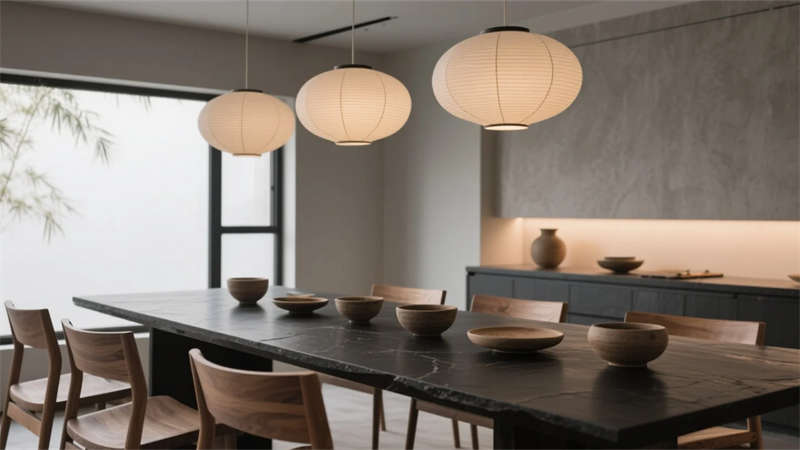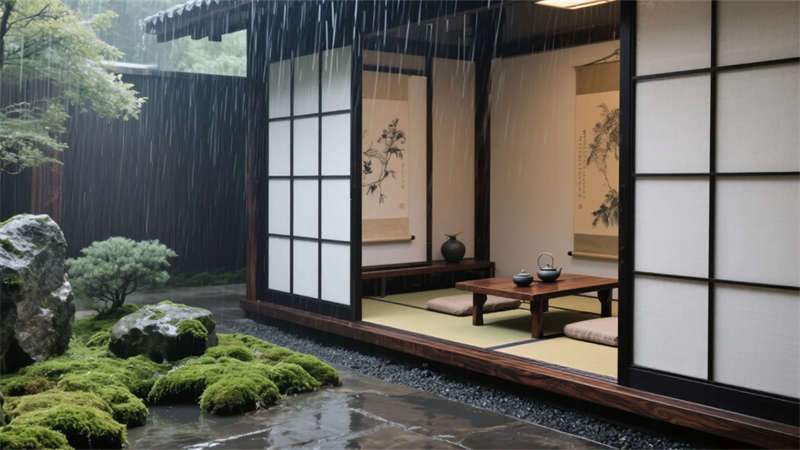 設(shè)計(jì)深諳留白哲學(xué),麻質(zhì)織物、陶藝器皿與胡桃木家具,以觸覺(jué)溫度軟化冷冽材質(zhì)。浴室如天然巖洞,玉石板透光似月暈;書閣古籍與當(dāng)代陶器并置,時(shí)空在翻頁(yè)間交融。庭院借景造境,雨簾青苔應(yīng)和自然呼吸,無(wú)邊水池倒映天光云影,火爐星夜下燃起歸巢暖意。