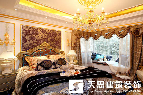 這個和上圖有明顯的區(qū)別,這是一個歐式裝修風(fēng)格的臥室。吊頂采用極為歐式還有布藝窗簾。燈槽也是采用了金色作為背景色。使整個空間看起來極為金碧輝煌,更中式的比較歐式顯得比較富麗堂皇極為惹眼。但是中式講究的低調(diào)內(nèi)涵,大氣和沉穩(wěn)。這只是燈飾在兩種中袖風(fēng)格中不同的作用。其實現(xiàn)實中裝修風(fēng)格多樣化,配合裝修材料和軟裝的搭配選擇合適的燈飾,能夠給你帶來更多的驚奇。