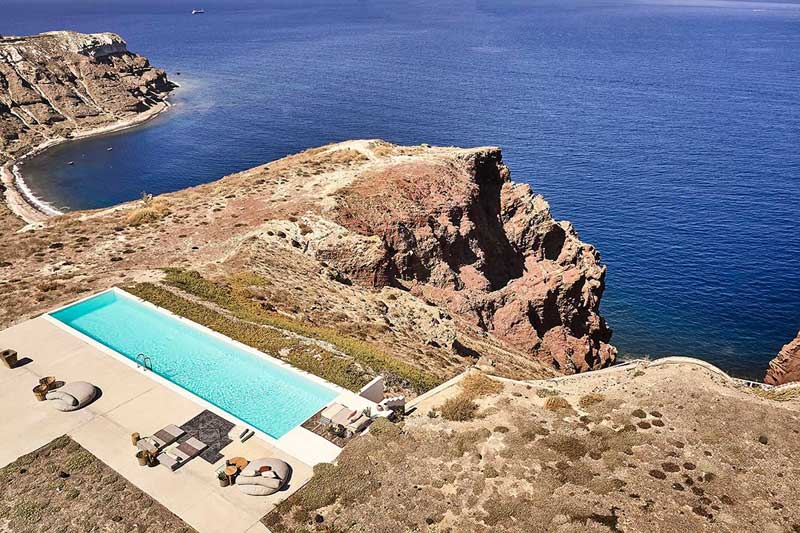 自然生態(tài)度假酒店坐落在圣托里尼島新月形狀的懸崖邊上,預(yù)計于今年5月初開放。在阿克羅蒂里古城附近,游客可以看到來自破火山口附近的碧藍(lán)海水和斑斕陡峭的熔巖層。這片建筑所帶來的與人類密切相關(guān)的體驗(yàn),進(jìn)一步點(diǎn)亮了周邊未經(jīng)雕琢的自然世界。復(fù)古飾品、大地色調(diào)和手工家具裝點(diǎn)了酒店的15間套房,筆直的線條、圣潔的白色與靈活的曲線等典型的圣托里尼建筑元素也在酒店中得以充分展現(xiàn)。在這里,人們可以盡享奢華的希臘式住宿,品嘗當(dāng)?shù)鼐虏穗?,感受棲于懸崖邊的全景泳池,在戶外社交中心參加各種有益身心的活動。