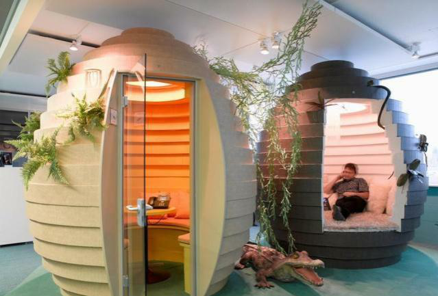 說起最吸引人跳槽的辦公室設(shè)計(jì),大家可能第一時(shí)間想到的就是谷歌公司的創(chuàng)意辦公室.辦公區(qū)域的每一處設(shè)計(jì)都別出心裁,融入了地方色彩,別具風(fēng)情.在這樣舒適愉悅的環(huán)境下辦公,谷歌總是能夠帶來許多令人眼前一亮的產(chǎn)品也有因可循了.谷歌辦公室以快樂健康,高效工作為目標(biāo).可以帶狗狗進(jìn)入辦公室(貓星人暫時(shí)不行)的人性化規(guī)定,打造與大自然融合的熱帶雨林辦公區(qū)域,提供挑選自己喜歡的廚師做飯的個(gè)性化餐廳服務(wù).谷歌的確稱得上"要?jiǎng)?chuàng)造世界上最令人感到幸福、最能激發(fā)生產(chǎn)力的工作場所."的辦公室.