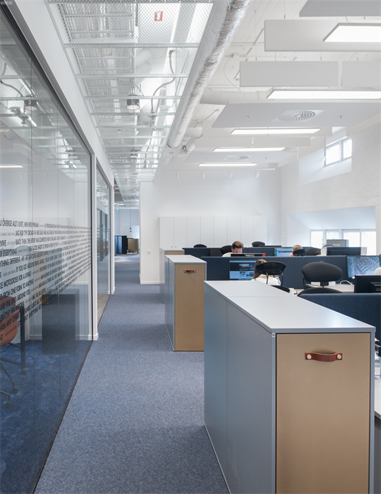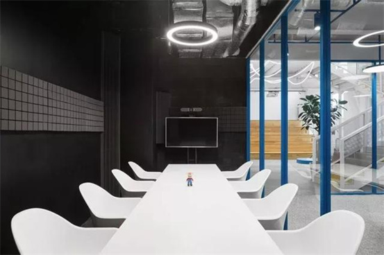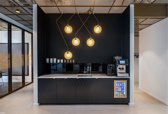 時尚與藝術(shù)并存的辦公室設(shè)計(jì)案例:整個空間設(shè)計(jì)手法簡約,原有建筑構(gòu)造和設(shè)備管線都展露無遺,色彩的巧妙構(gòu)筑讓這處極簡loft風(fēng)的辦公環(huán)境充滿了時尚的活力氛圍。墻面上充滿活力的圖案和一張乒乓球桌是視覺中的主角,而主入口就在這里。這里沒有傳統(tǒng)的接待臺,訪客進(jìn)入辦公室,可以為自己沖杯咖啡,然后進(jìn)入到內(nèi)部空間。入口處設(shè)有員工更衣室。辦公室的中央是一處大型演講廳,也是主要的活動場所。多功能演講廳配有看臺式階梯座、咖啡吧、屏幕和投影儀、講臺和所有其它必要的設(shè)備,即可以舉辦研討會、各種宣講,也是一處極為舒適的聚會場所。空間內(nèi)的照明設(shè)計(jì)非常獨(dú)特,采用了網(wǎng)格狀的矩陣布局,將所有燈具串聯(lián)在一起,形成精致的美學(xué)效果。整個空間形成一個明亮的背景,襯托出有趣的設(shè)計(jì)細(xì)節(jié)和墻面圖形設(shè)計(jì)。