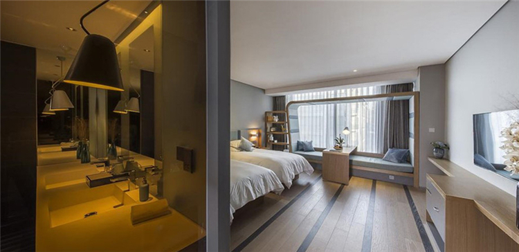 本酒店設(shè)計注重居室空間的布局與使用功能的完美結(jié)合,以簡潔而不簡單的造型、不繁重?zé)o過多的裝飾來裝點空間,強(qiáng)調(diào)形態(tài)與物件的單一性、抽象性,使整體環(huán)境更顯舒適大氣。空間簡約的同時,色彩就要跳躍出來,通過大量高純度色彩的運(yùn)用,靈活而又大膽,不單是對現(xiàn)代風(fēng)格的遵循,也是個性的展示,從而打造出一個格調(diào)高雅、與眾不同的酒店空間。