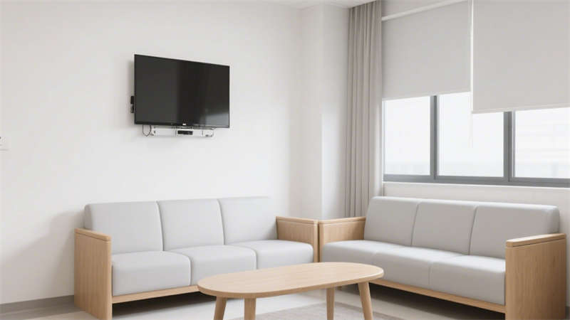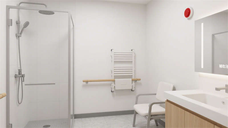 居住房間內,家具選擇圓角設計,減少意外碰撞帶來的傷害;床頭設置緊急呼叫按鈕,方便老人在需要時快速尋求幫助,按鈕位置高度適中,便于老人伸手觸碰。室內采光充足,搭配柔和的照明系統(tǒng),避免強光刺激老人眼睛,同時保證夜間行走時的光線亮度。色彩搭配以溫暖柔和的色調為主,營造溫馨舒適的居住氛圍,幫助老人緩解焦慮情緒,更快適應養(yǎng)老院的生活環(huán)境。整體設計在滿足適老化功能需求的同時,兼顧現(xiàn)代風格的美觀與實用性,為老人提供一個安全、舒適、溫馨的居住空間。